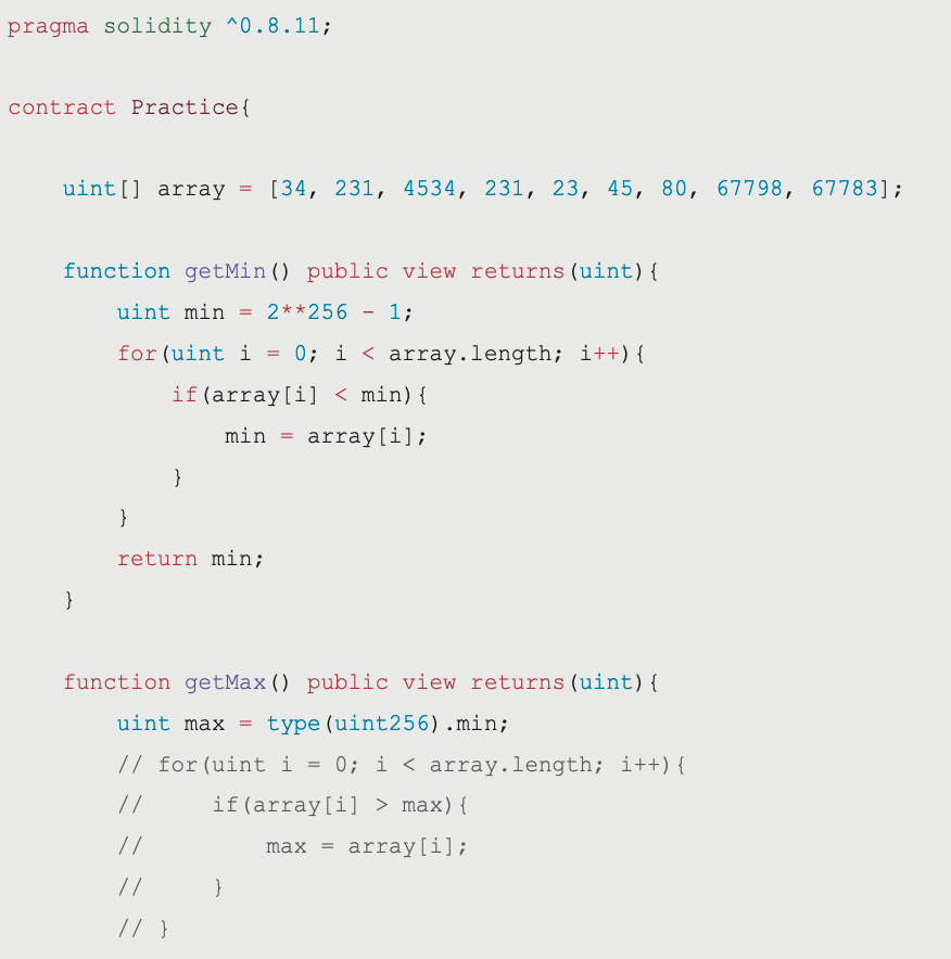 uint min = 2**256 - 1;