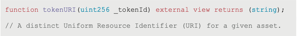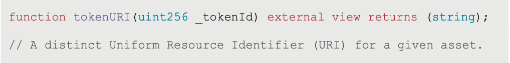 function tokenURI(uint256 _tokenId) external view returns (string);