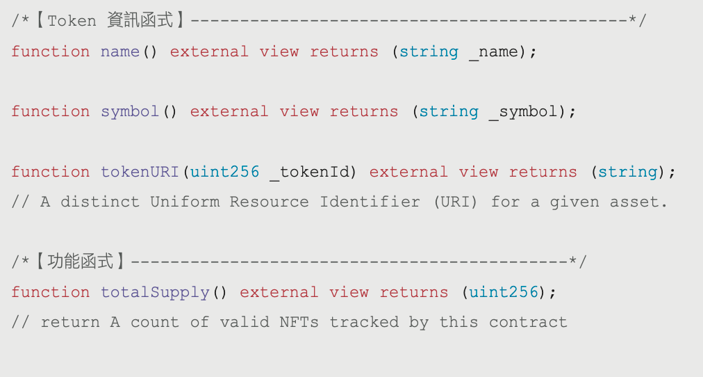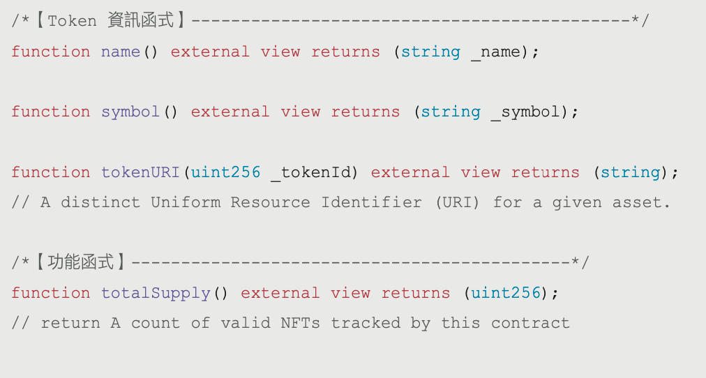 ERC-721 的功能函數、事件與資訊