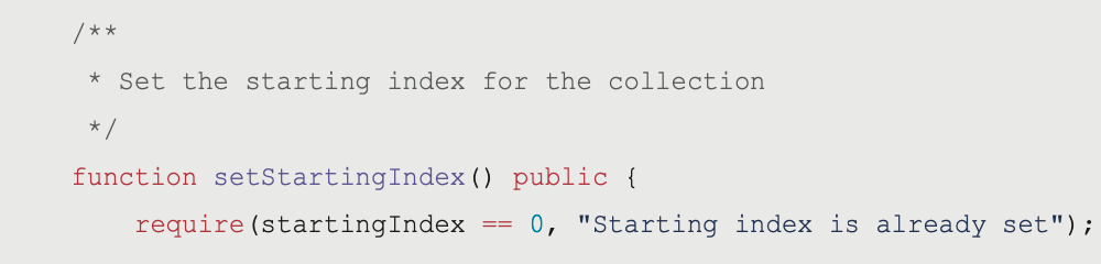 require(startingIndex == 0, "Starting index is already set");