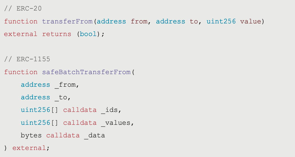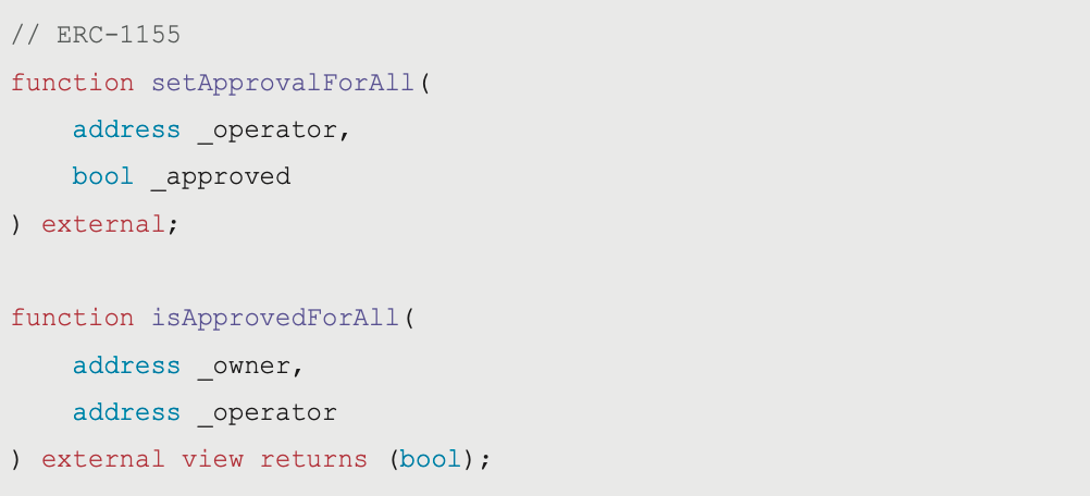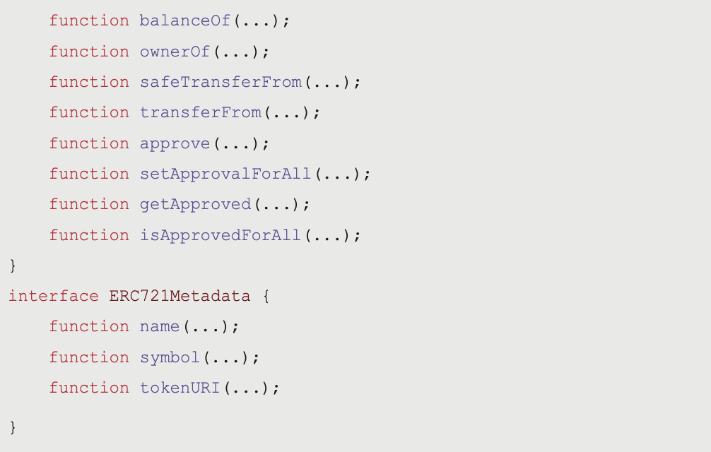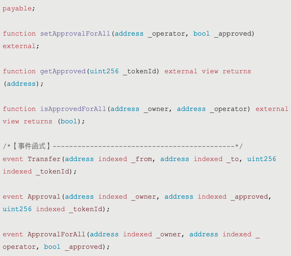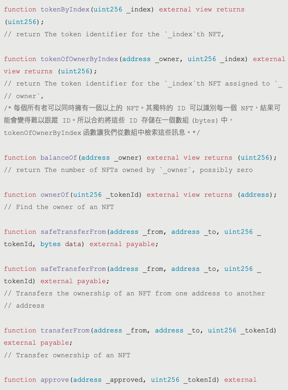 ERC-721 除了本身兼容了 ERC-20 內的規則,還包含以下的函式: