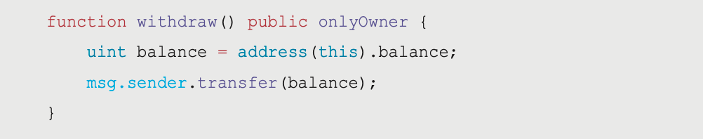 這個函式可以把合約裡面的所有錢都提出來,想當然爾這個函式得多加一個 onlyOwner 的 modifier 加以限制權限。