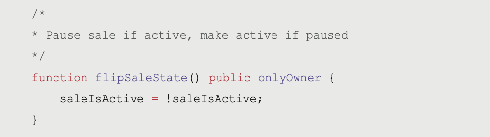 */ function flipSaleState() public onlyOwner {