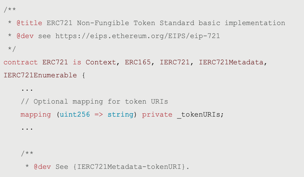所以在每個 ERC-721 的合約之中, 每組 contract address, uint256 tokenId 都是獨一無二的,這種代幣可以通過區塊鏈上的智能合約追蹤,從而形塑數位化的資產。