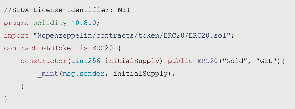 constructor(uint256 initialSupply) public ERC20("Gold", "GLD"){_mint(msg.sender, initialSupply);