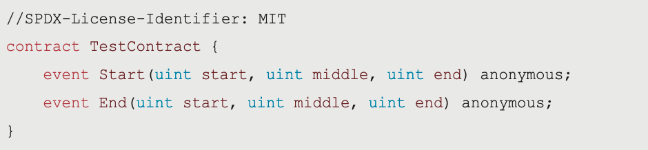 不同於一般的 events,匿名事件不會包含任何 indexed signature 的 keccak加密結果。因為他們不可以被簡單地搜尋或被特別地解密,除非我們擁有合約 ABI。變相來說普通的事件,其簽名會被保存在 topic 中,而 anonymous 則不會,所以無法透過名字來過濾。