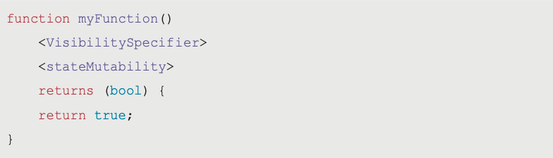 Function 又被翻譯為函數、方法、函式等,藉由呼叫(Call)以及 輸入參數(也可不輸入)後來達到某些行為,像是回傳(Returns,也可不回傳)或修改某些值。 當我們在一個函數的 parameter 前宣告 constant 時,此變數就不允許被賦值(除了初始化),也不佔用存儲槽。