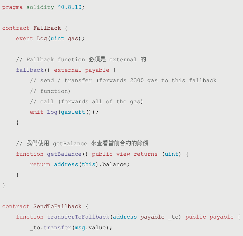 payable的 Function 符合調用,那就會觸發例外處理(exception),除非我們擁有 Fallback function -