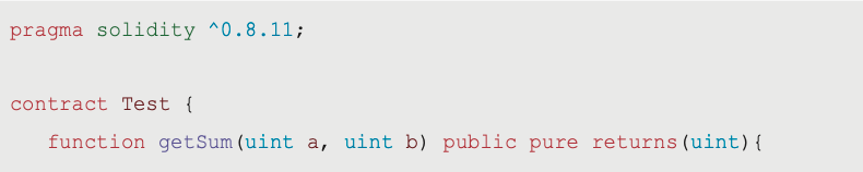 function getSum(uint a, uint b, uint c) public pure returns(uint){