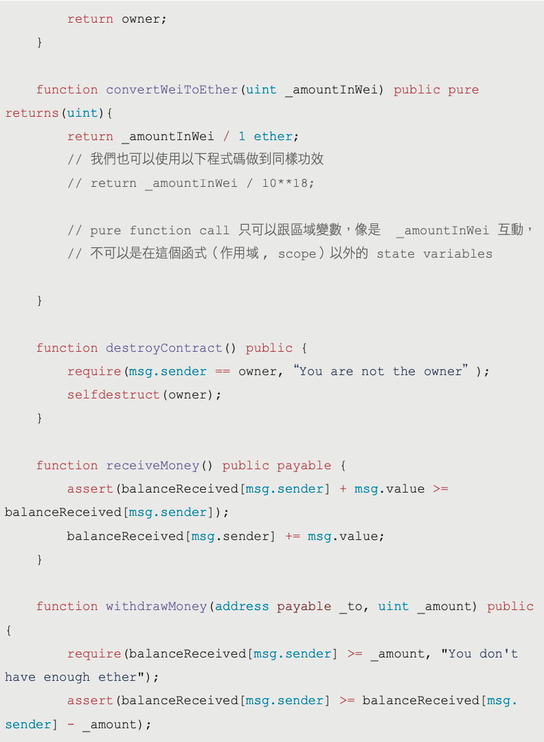 // pure function call 只可以跟區域變數, 像是 _amountInWei 互動