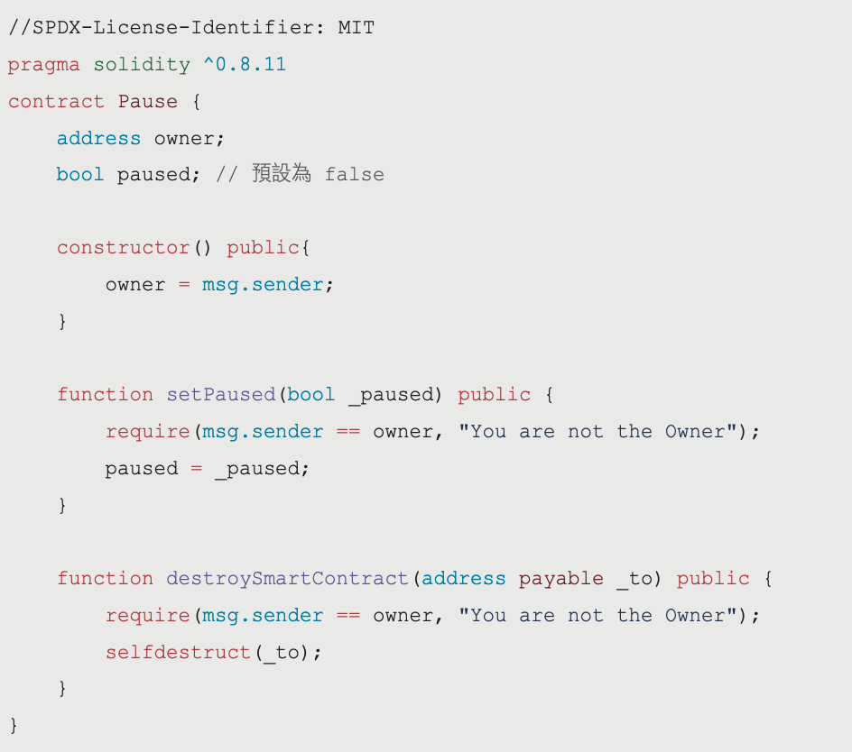 請實作可以啟動、暫停、凍結、刪除的智能合約。