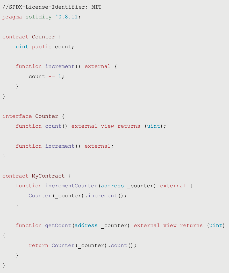 function incrementCounter(address _counter) external {ICounter(_counter).increment();