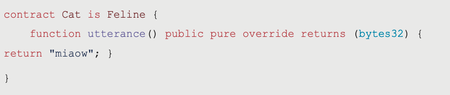 function utterance() public pure override returns (bytes32) {return "miaow"; }