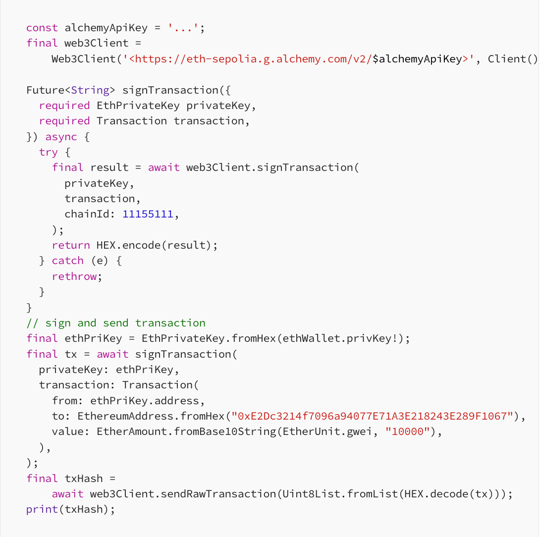Web3Client('<https://eth-sepolia.g.alchemy.com/v2/$alchemyApiKey>', Client());