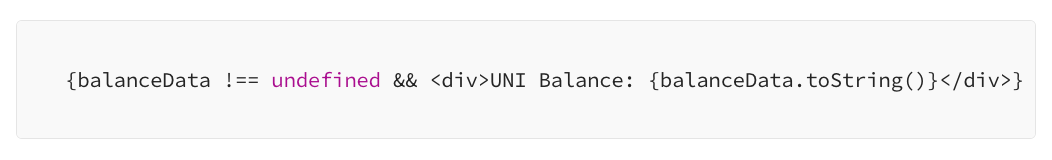 {balanceData !== undefined && <div>UNI Balance: {balanceData.toString()}</div>}