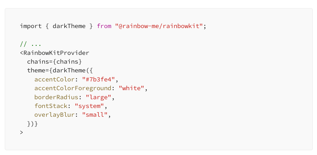 import { darkTheme } from "@rainbow-me/rainbowkit";